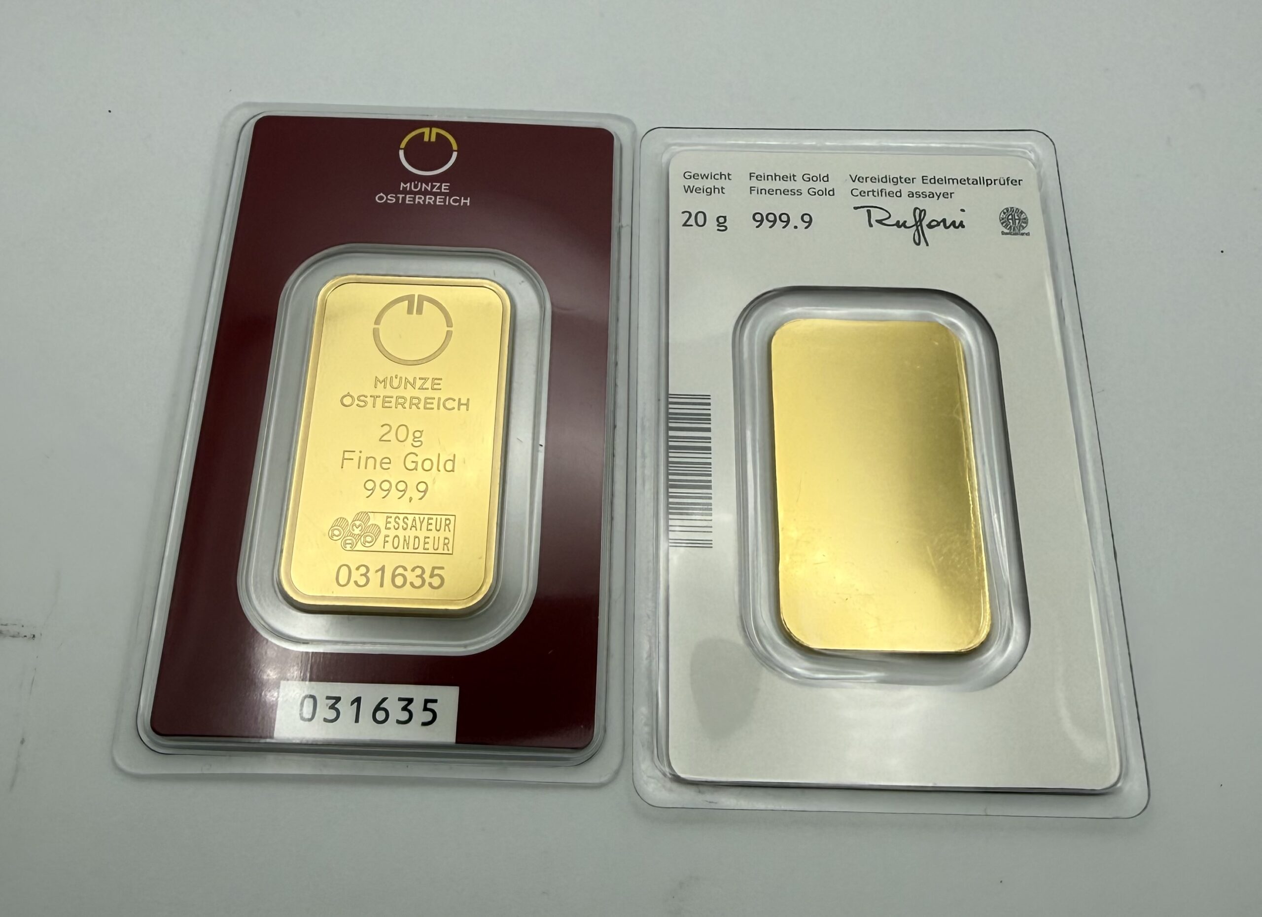 20 Gramm Goldbarren Münze Österreich Prägebarren